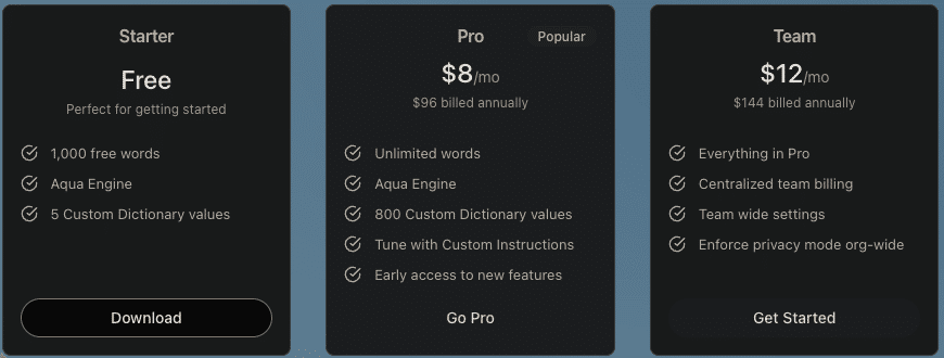 Aqua Voiceに興味を持たれた方は、まず無料のStarterで試してみることをお勧めします。1,000単語までの試用になりますが、十分その凄さを理解できると思います。